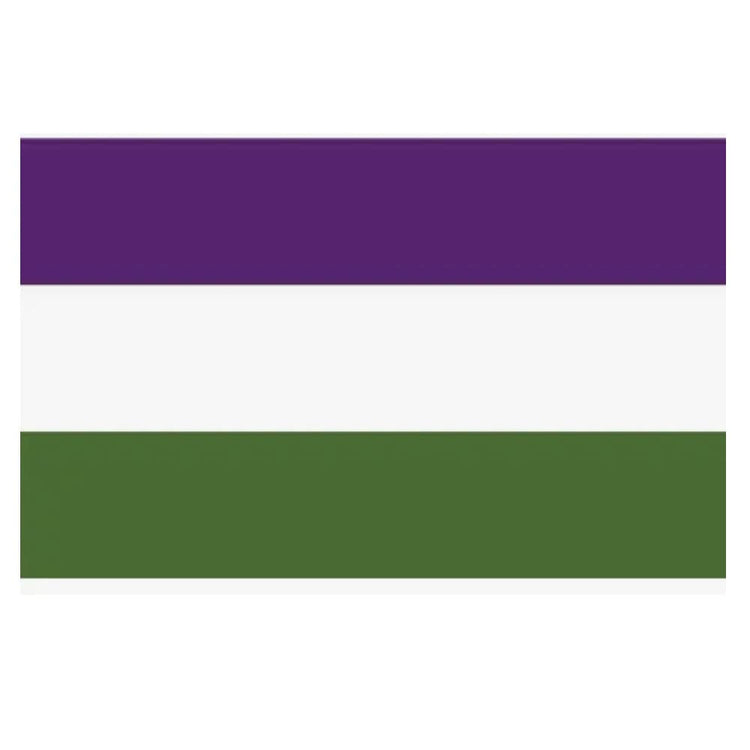 At the heart of our collection is the Genderqueer Pride Flag, featuring its distinctive colors of green, white, & purple stripes. Purple represents androgyny and queer identities, white represents agender and/or gender-neutral identities and green represents third-gender identities and identities outside the gender binary. Available in various sizes, our flags are perfect for displaying at home, pride events, or any place you want to express your pride and support. Made from high-quality materials, our flags maintain their vibrant colors both indoors and outdoors, serving as a lasting symbol of your identity.