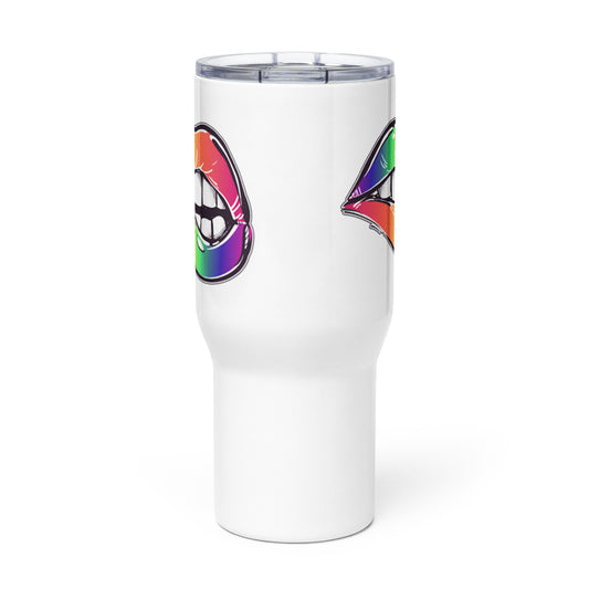 LGBTQ Pride Stainless Steel Travel Mug with Handle - Rainbow Lips