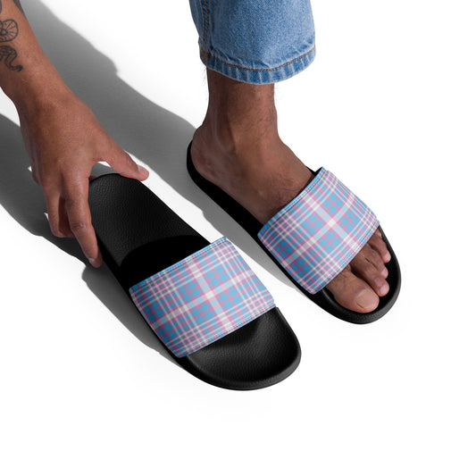 Transgender Trans Pride Men’s Size Slides Sandals in Plaid