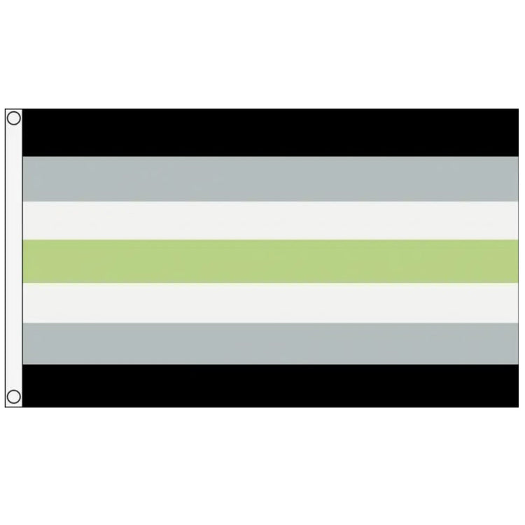 Nuestra colección incluye la icónica bandera del orgullo agénero, que muestra sus distintivas rayas negras, grises, blancas y verdes que representan la ausencia de género. Disponibles en varios tamaños, estas banderas son perfectas para exhibir en casa, en eventos del orgullo o en cualquier lugar donde desees expresar tu identidad. Fabricadas con materiales de alta calidad y resistentes a la intemperie, nuestras banderas mantienen sus colores vibrantes tanto en interiores como en exteriores.