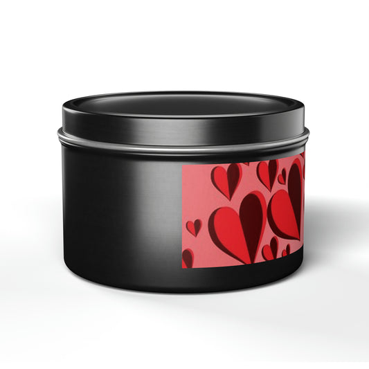 Gift Tin Scented Candle Red Gray Candy Hearts