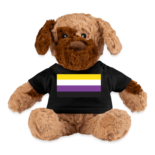 Peluche de perro con la bandera del orgullo no binario de Enby