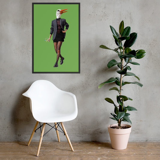 Arte del collage de la cigüeña nerviosa Póster enmarcado
