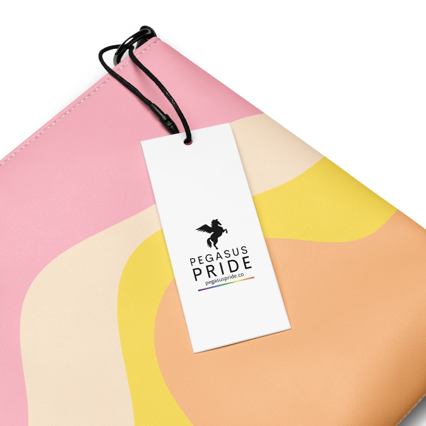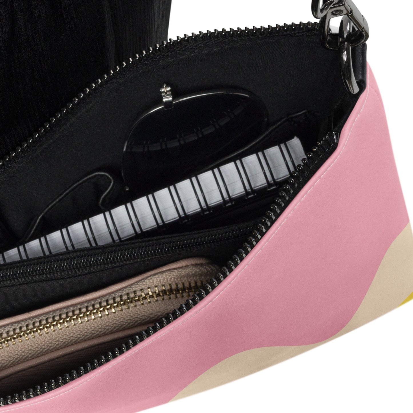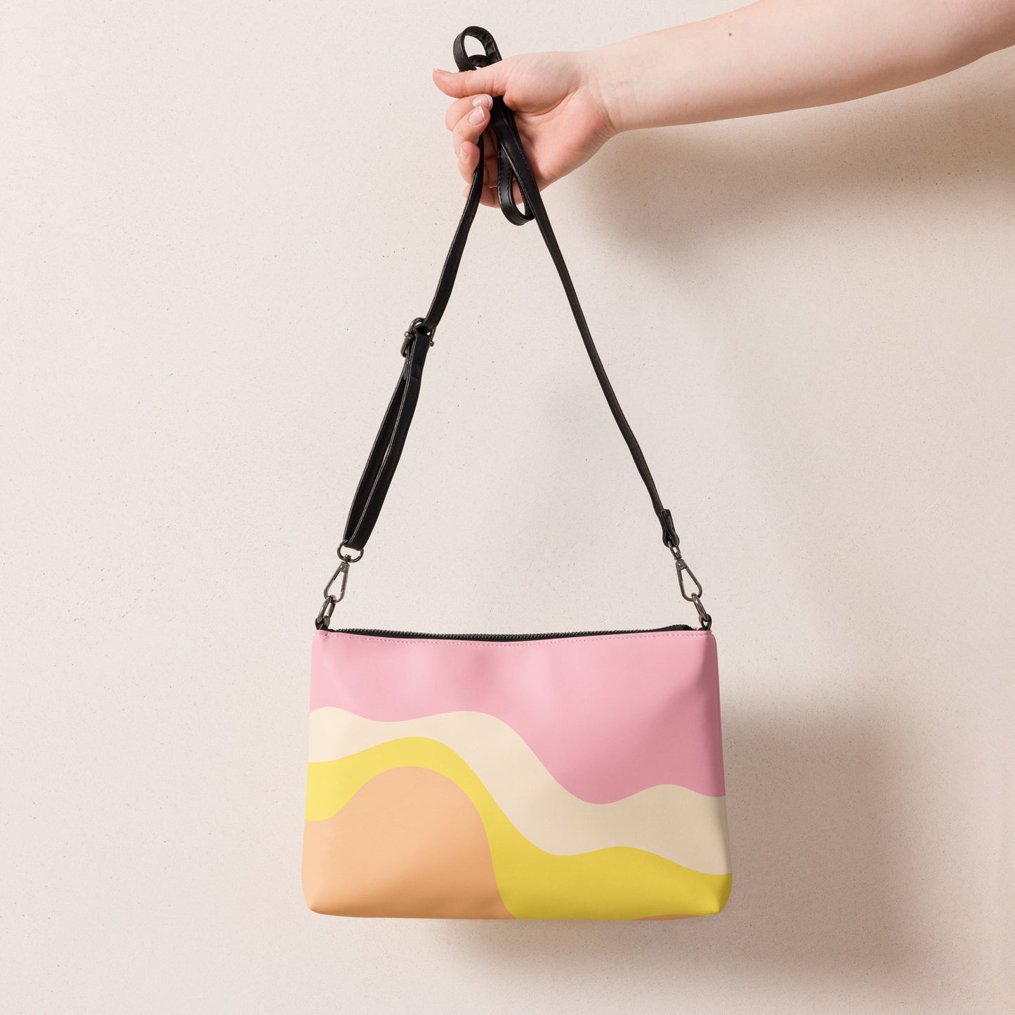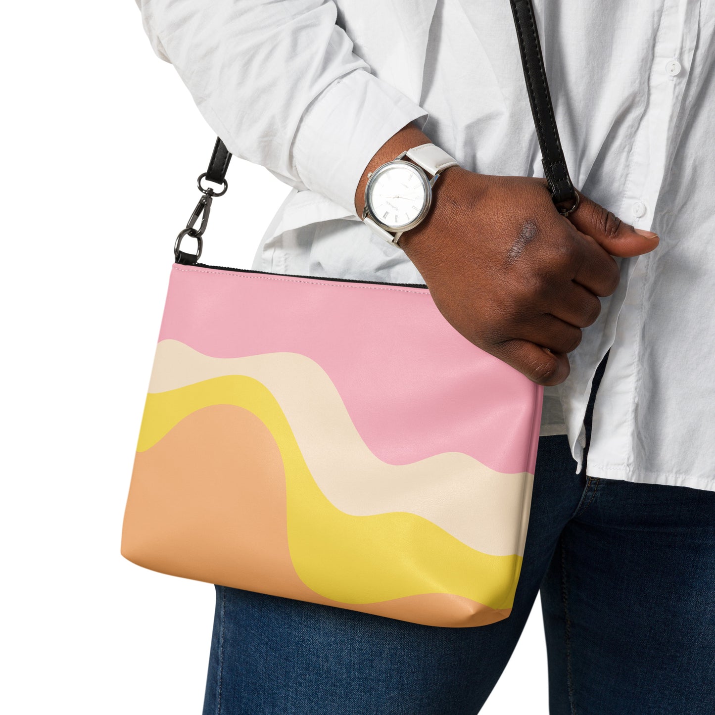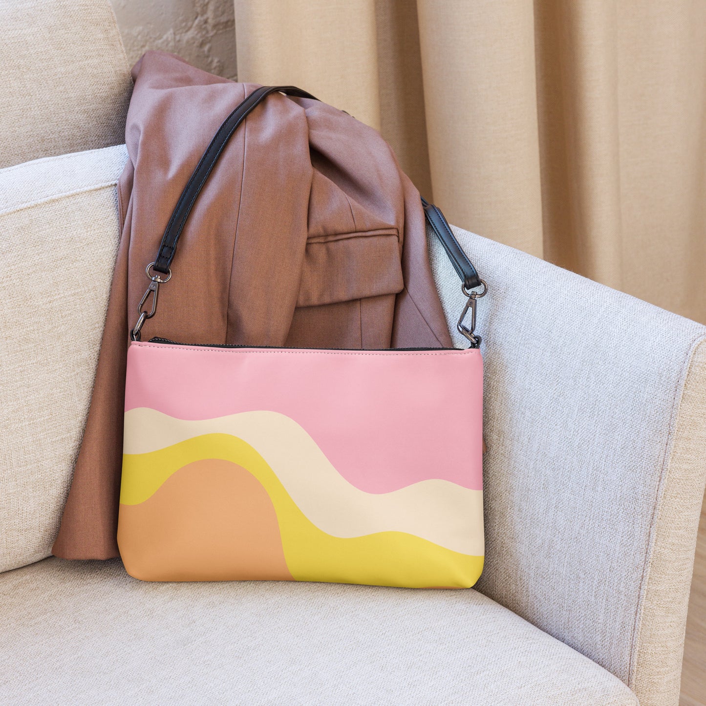 Keep your style on point and your hands free with our versatile Abstract Desert Sunset Purse Handbag. It’s made of premium vegan faux leather and features dark gray hardware. Thanks to the zip-top closure and multiple inside pockets, you can keep your essentials secure and organized. Transform this crossbody bag with interchangeable wrist and shoulder straps to style it for day-to-night looks.