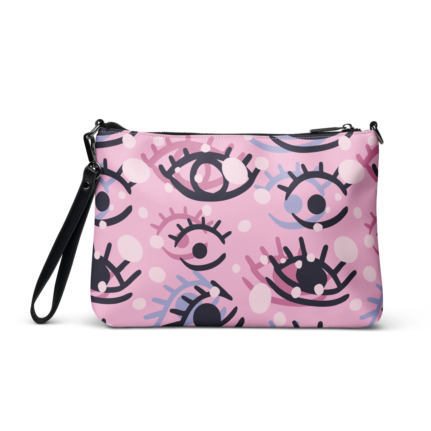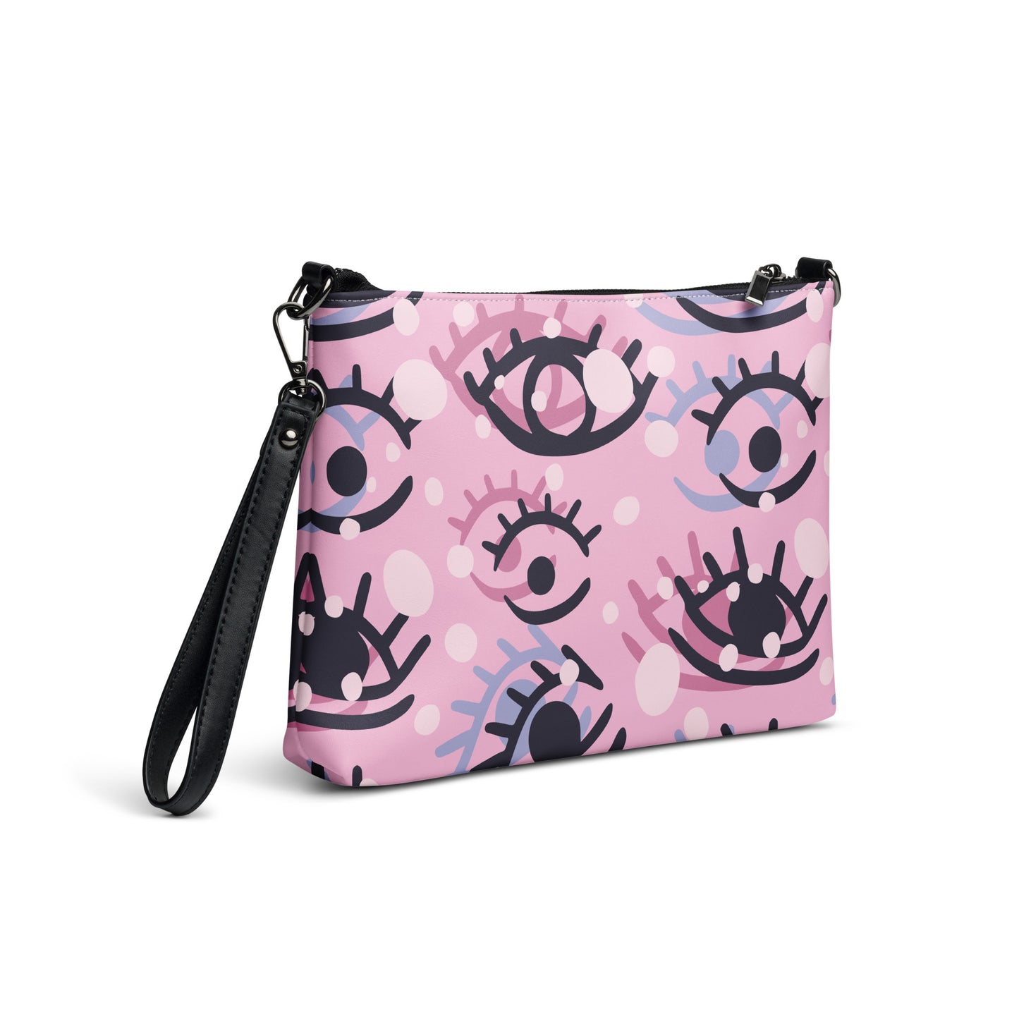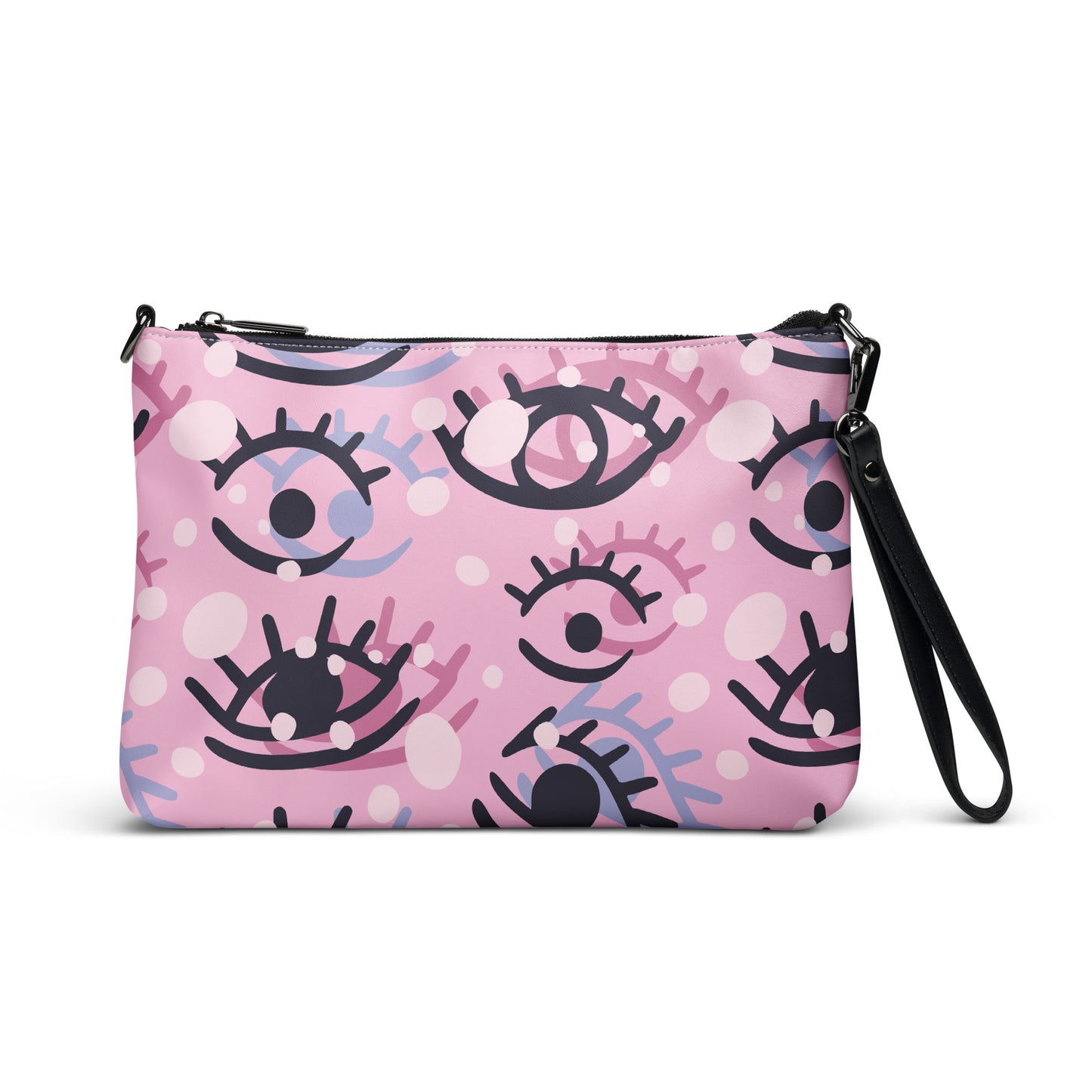 Keep your style on point and your hands free with our versatile Abstract Eye See You Purse Handbag. It’s made of premium vegan faux leather and features dark gray hardware. Thanks to the zip-top closure and multiple inside pockets, you can keep your essentials secure and organized. Transform this crossbody bag with interchangeable wrist and shoulder straps to style it for day-to-night looks.