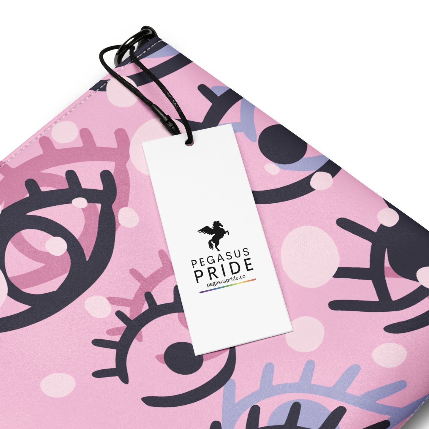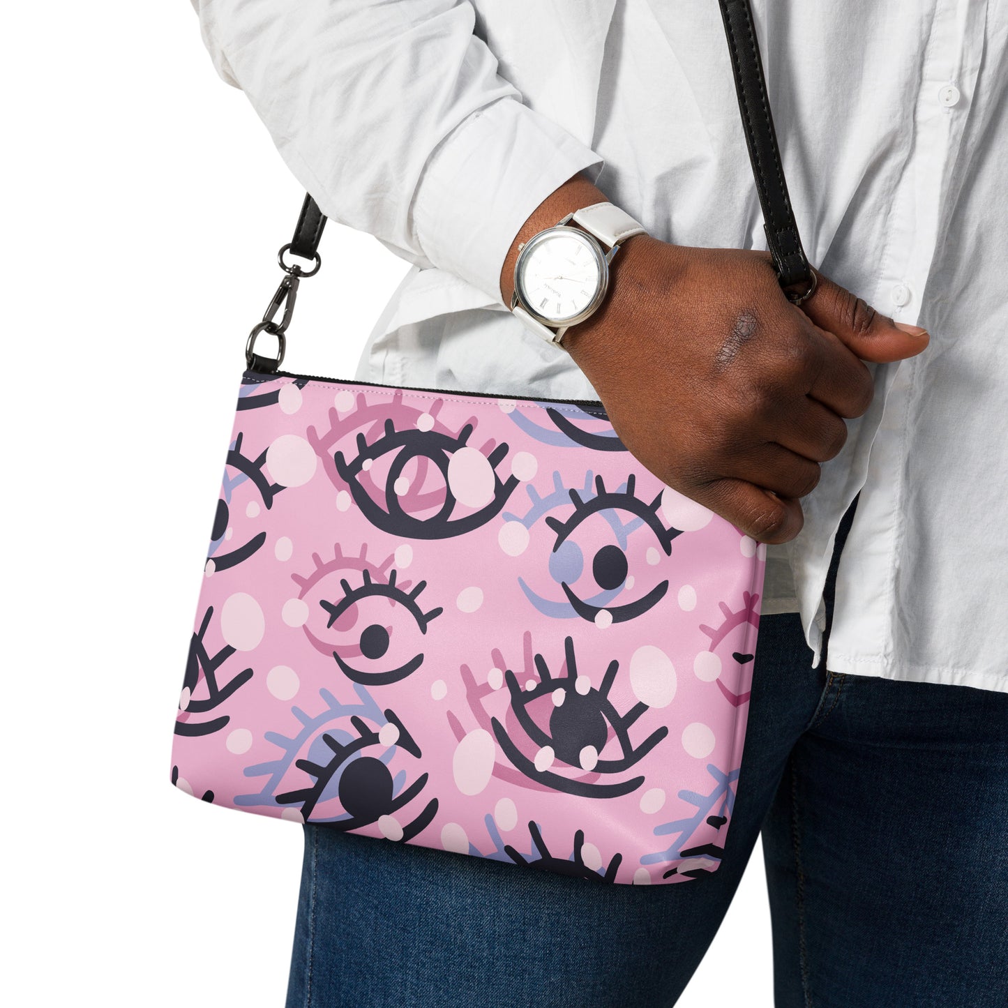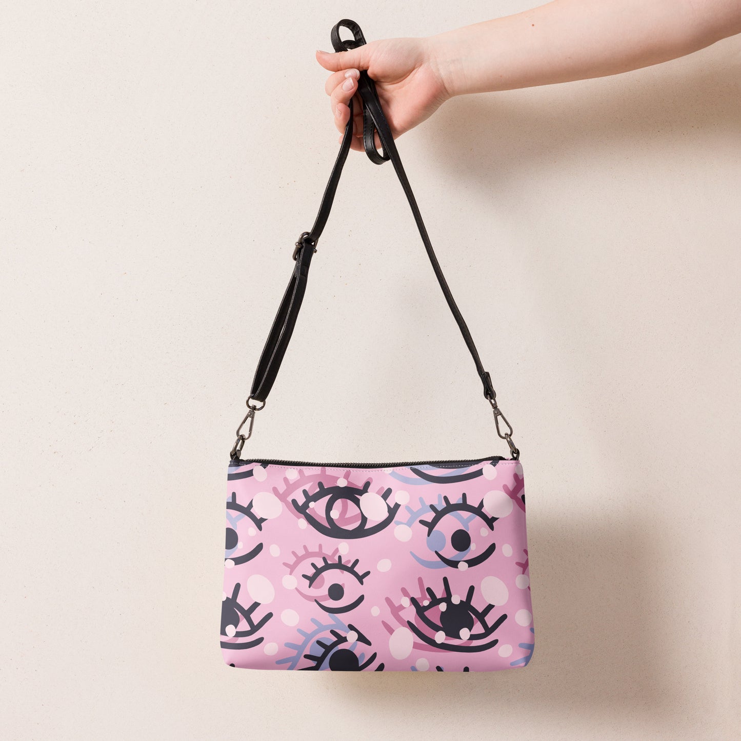 Keep your style on point and your hands free with our versatile Abstract Eye See You Purse Handbag. It’s made of premium vegan faux leather and features dark gray hardware. Thanks to the zip-top closure and multiple inside pockets, you can keep your essentials secure and organized. Transform this crossbody bag with interchangeable wrist and shoulder straps to style it for day-to-night looks.