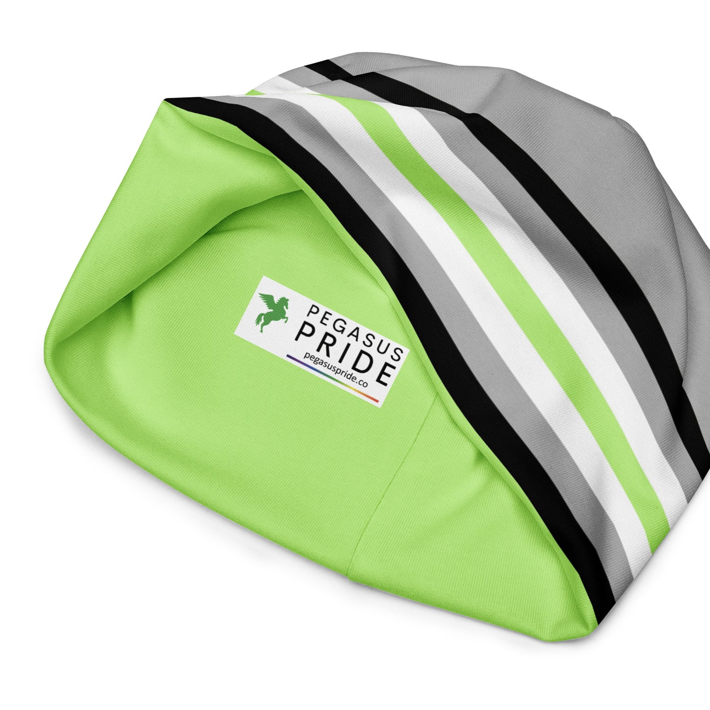 Stay warm and stylish with this Agender Pride Beanie! Perfect for chilly days, this double-layered, ultra-soft hat will keep you cozy and comfy. Show your pride!