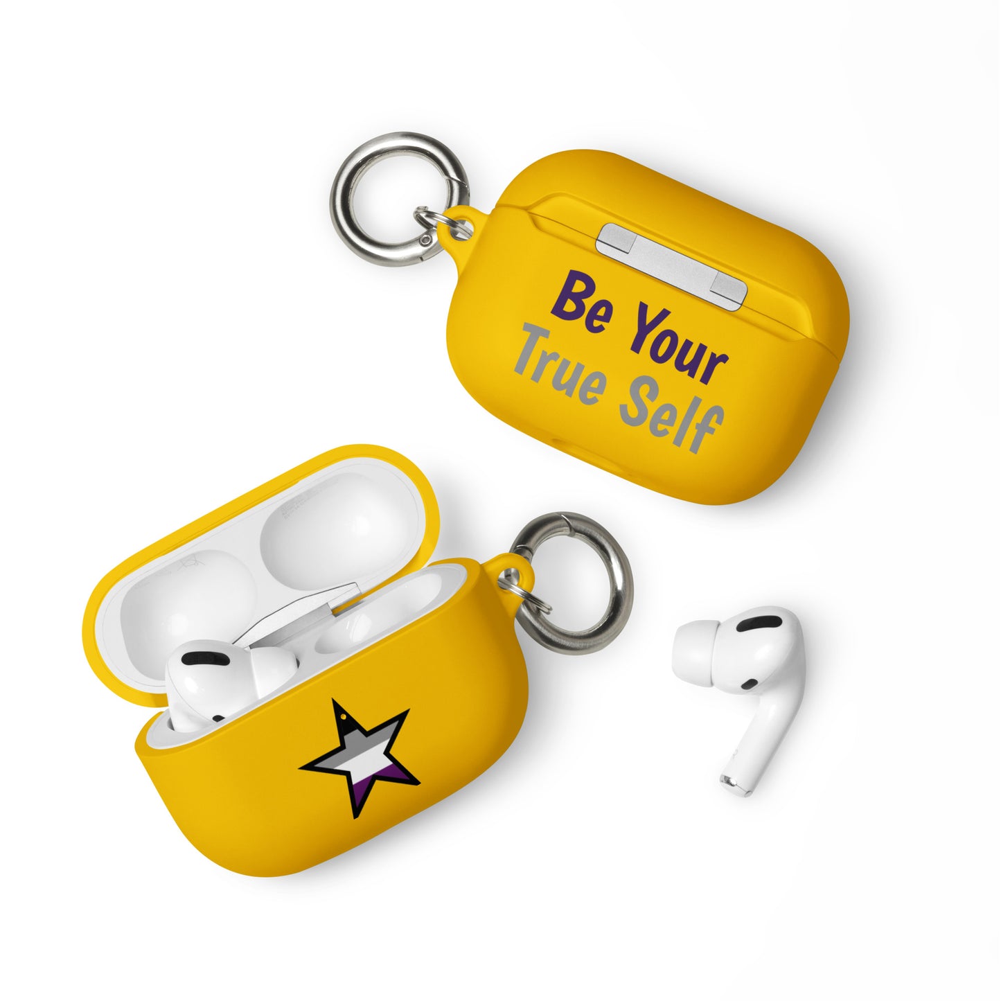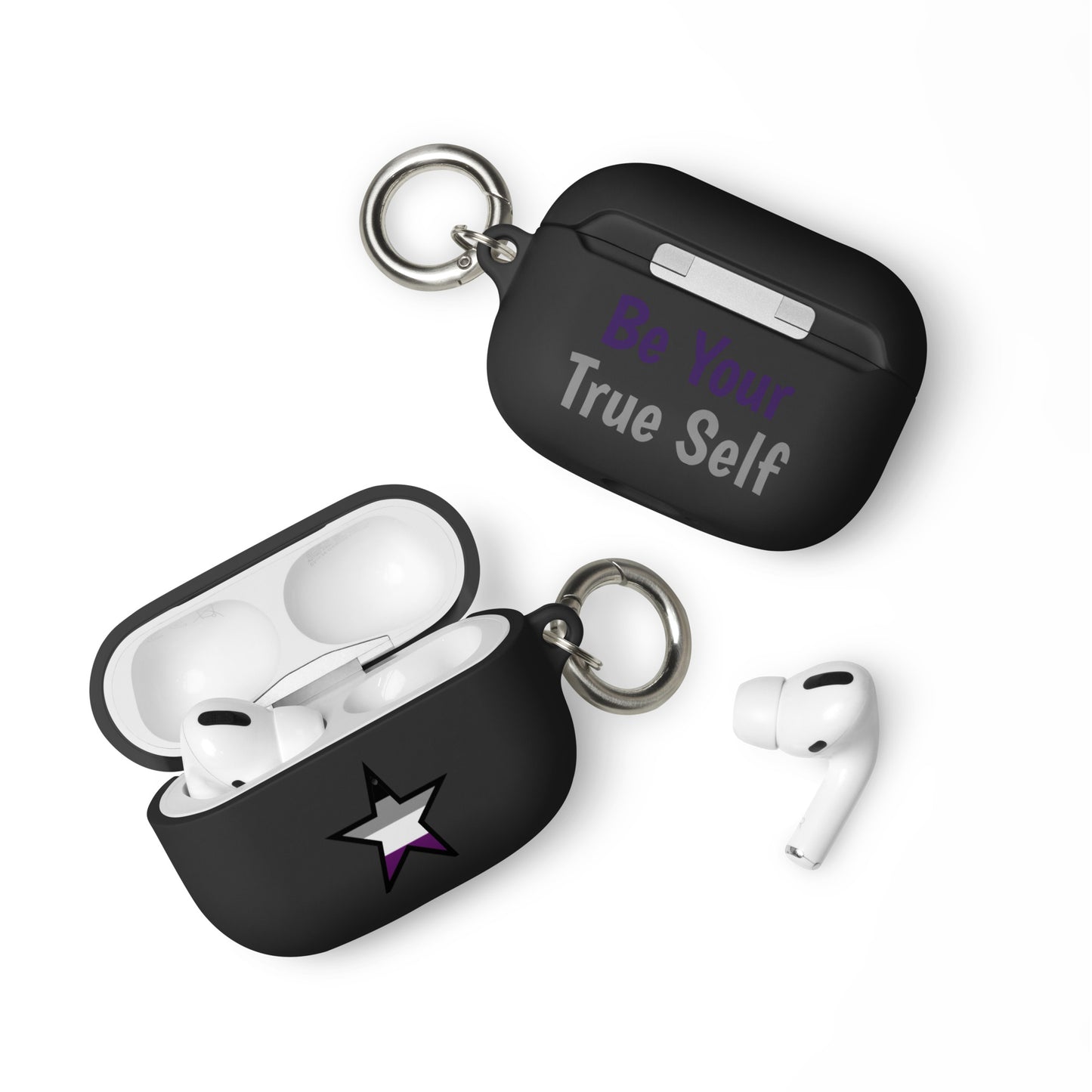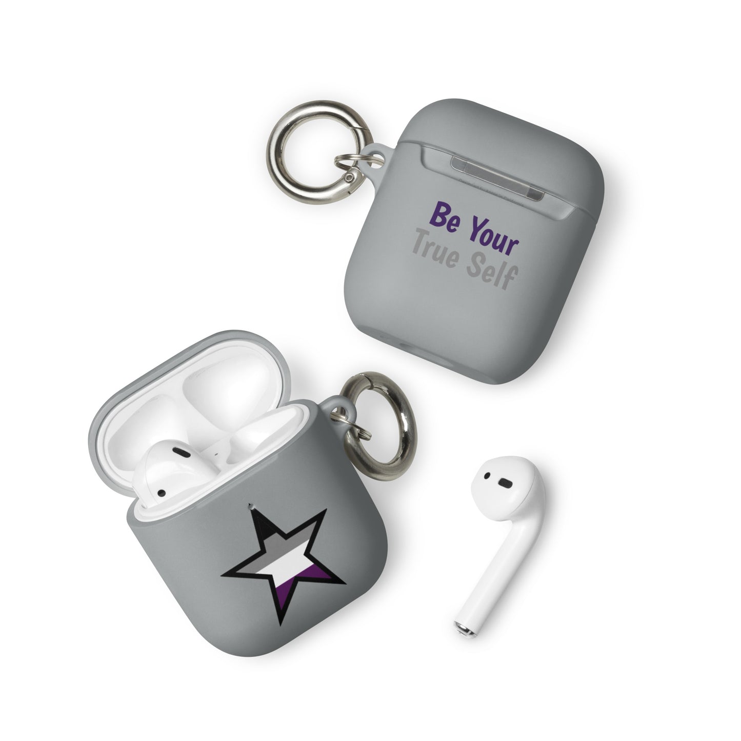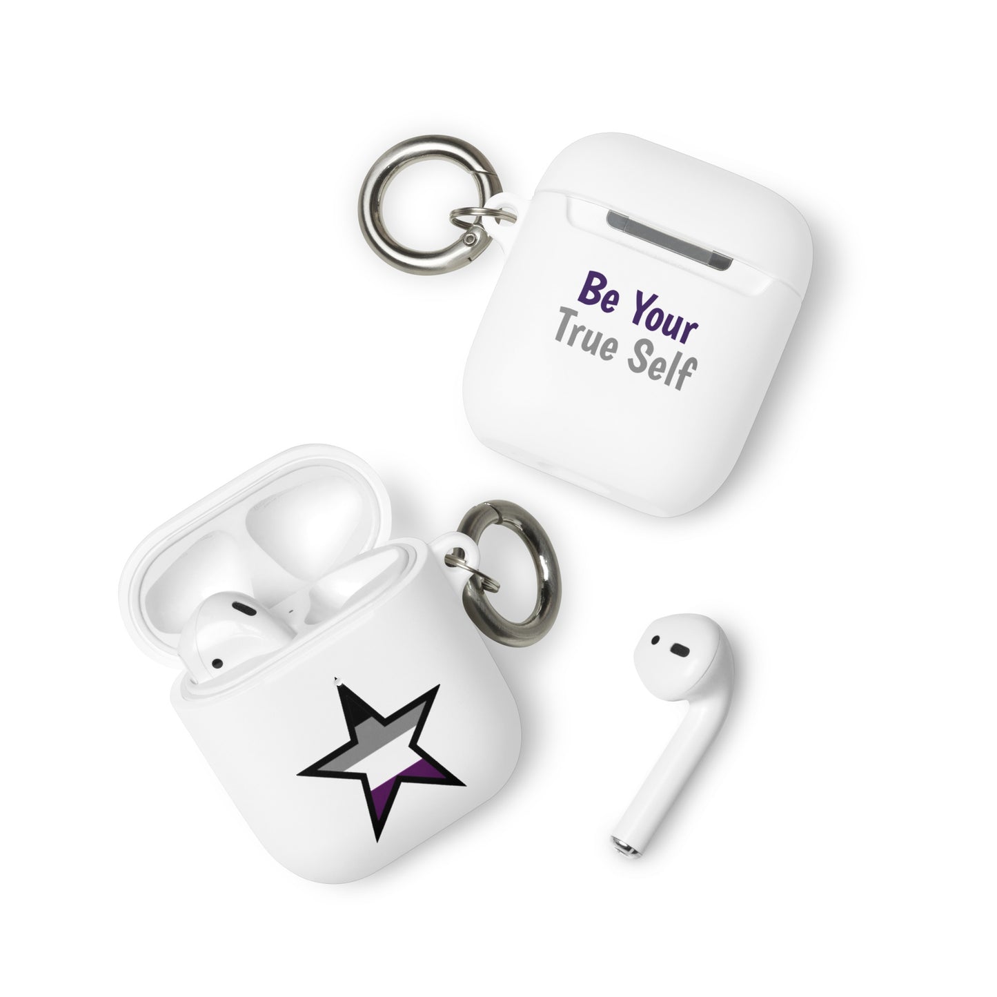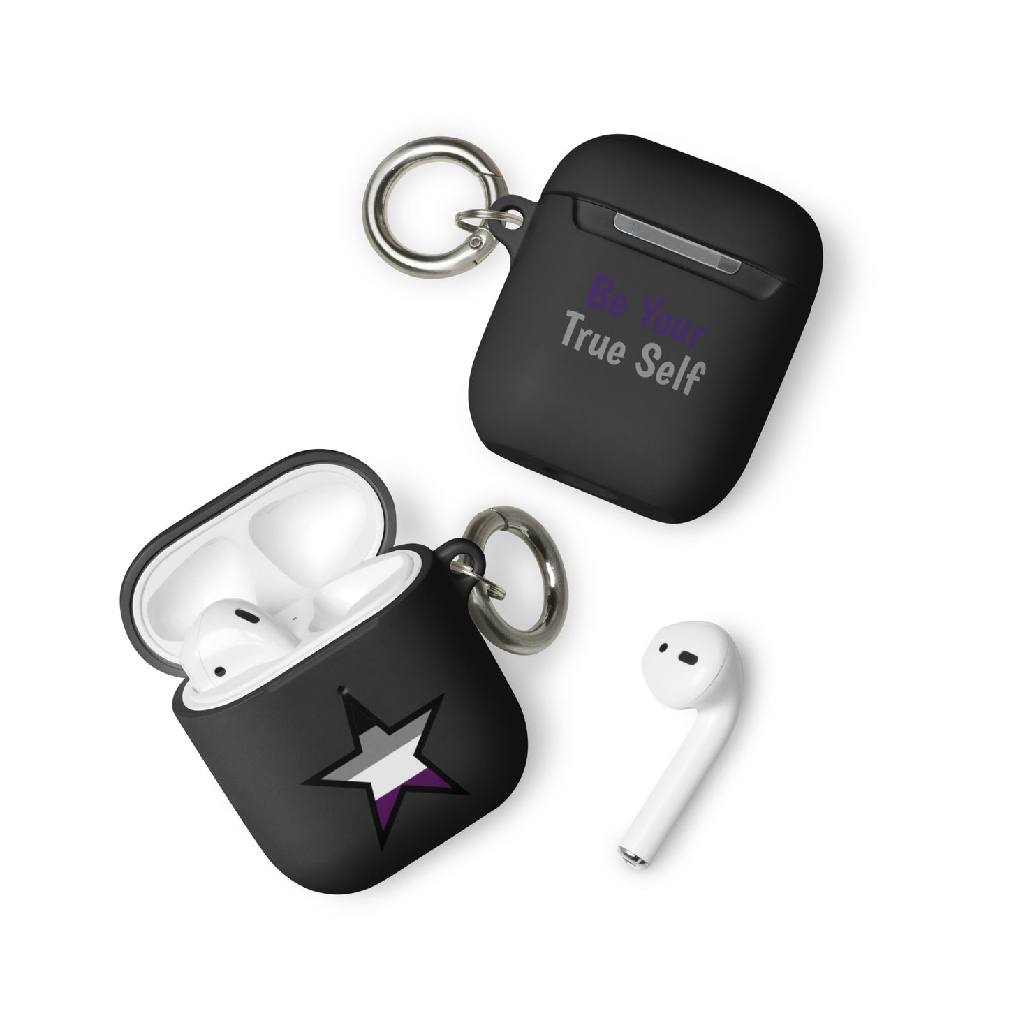 Get a two-in-one deal with these Asexual Ace Pride Rubber Case for Apple AirPods® Star: an impact-absorbing protector for your earbuds and a stylish accessory you can attach to your clothes and bags with a metal carabiner. This case is made from a durable TPU material and works with both wireless and regular AirPod® chargers.