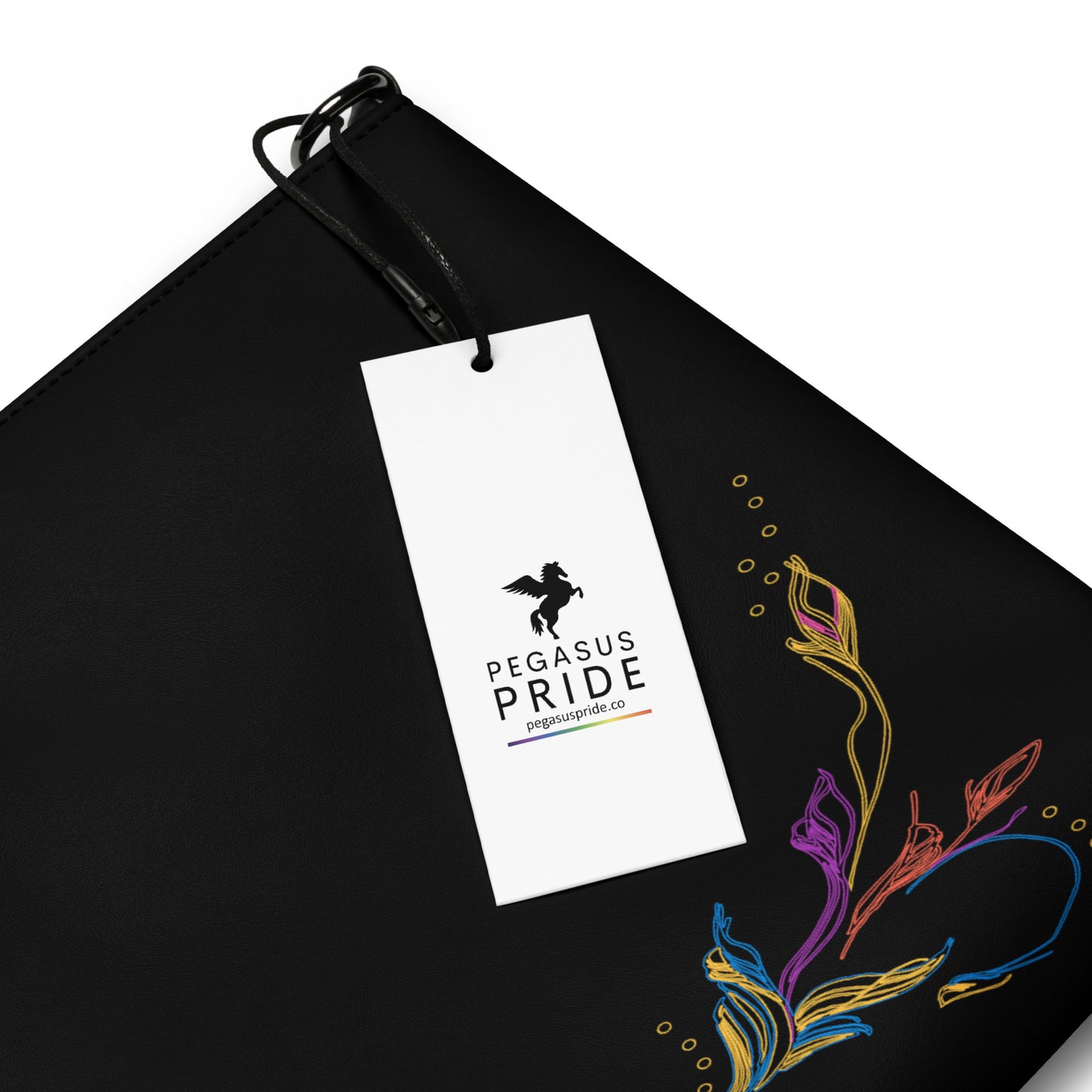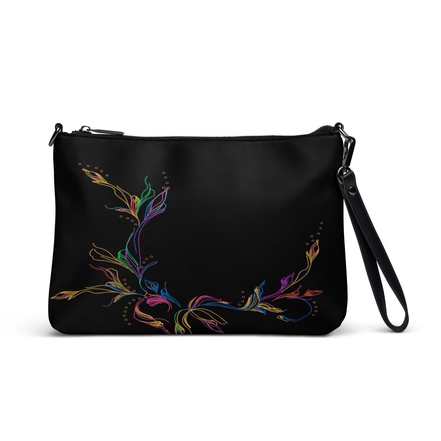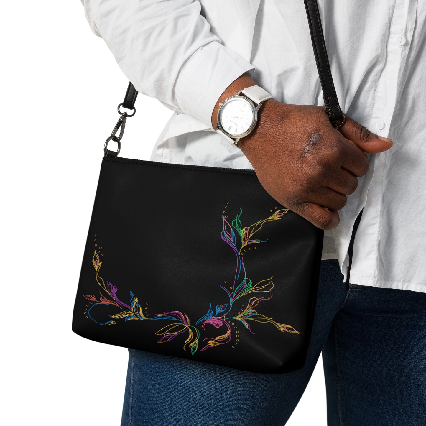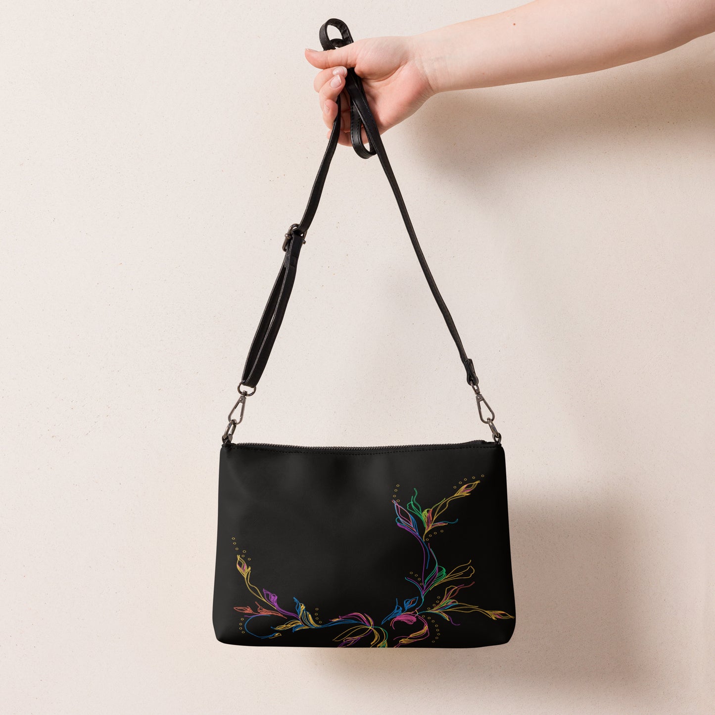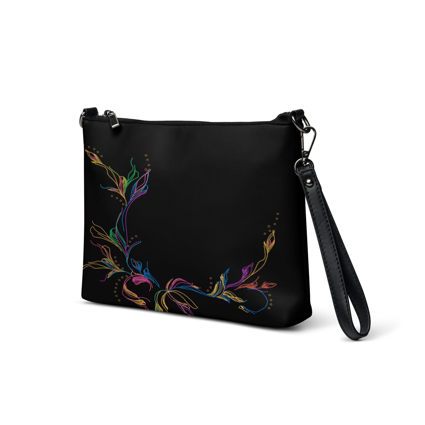 Keep your style on point and your hands free with our versatile Floral Elegante Purse Handbag. It’s made of premium vegan faux leather and features dark gray hardware. Thanks to the zip-top closure and multiple inside pockets, you can keep your essentials secure and organized. Transform this crossbody bag with interchangeable wrist and shoulder straps to style it for day-to-night looks.