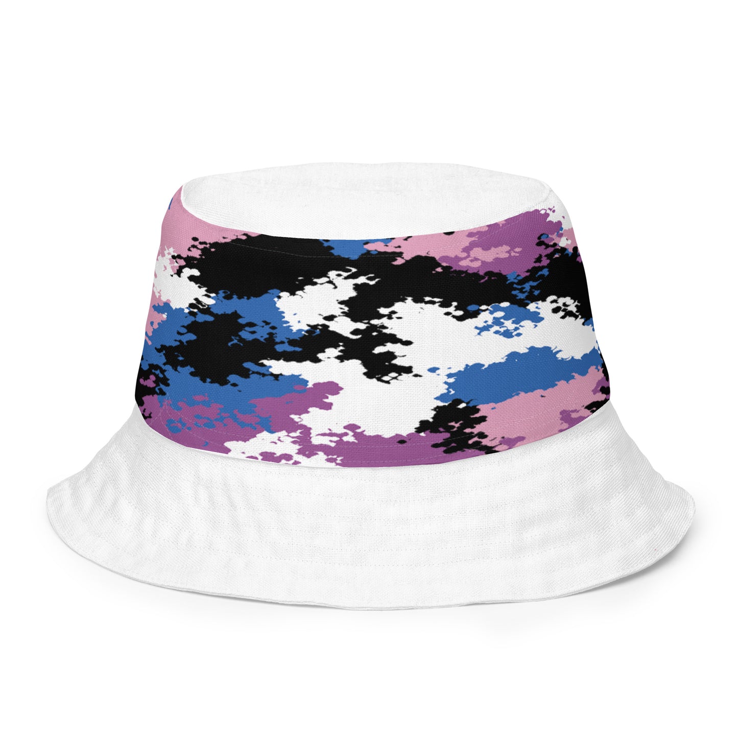 Switch up your look with this reversible Genderfluid Pride Bucket Hat - Camo! Its dual-sided design lets you mix and match with any outfit. Crafted from high-quality, breathable fabric, this hat is the perfect addition to your streetwear collection.