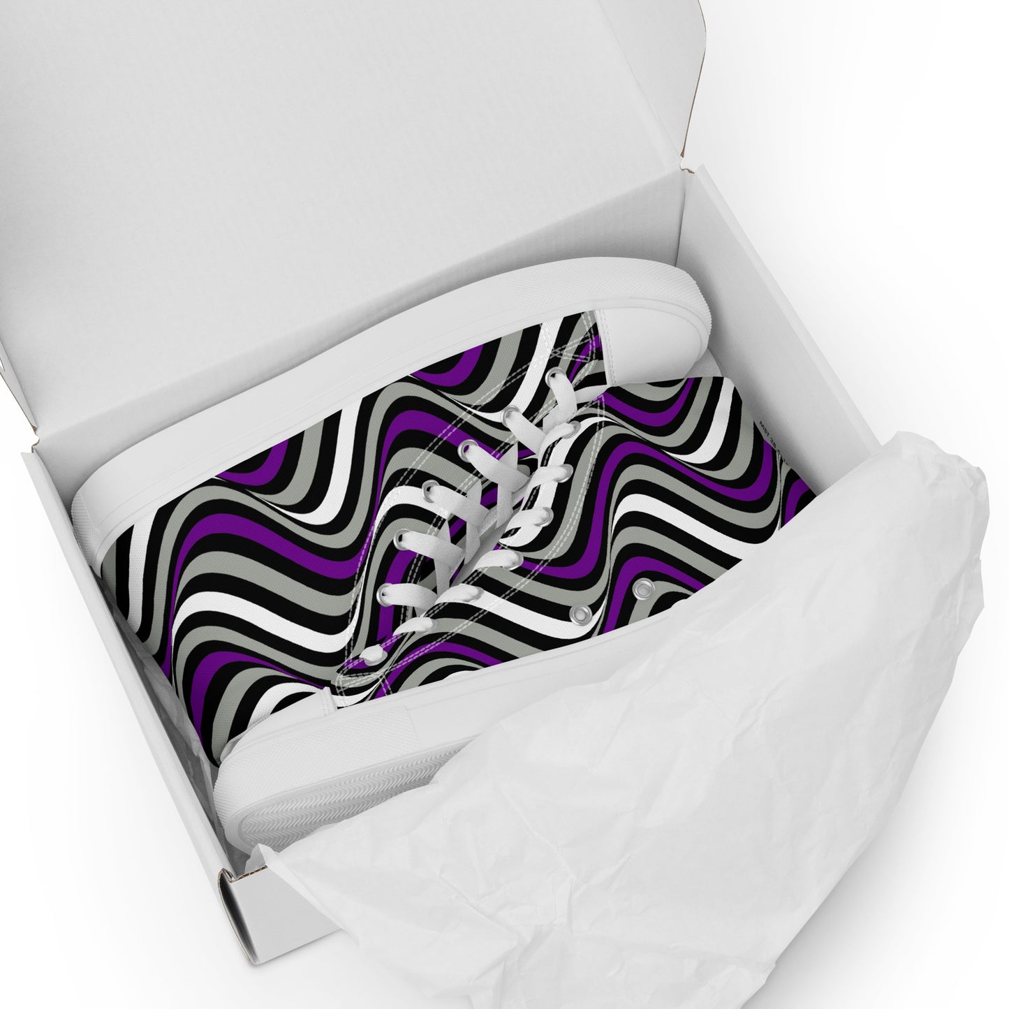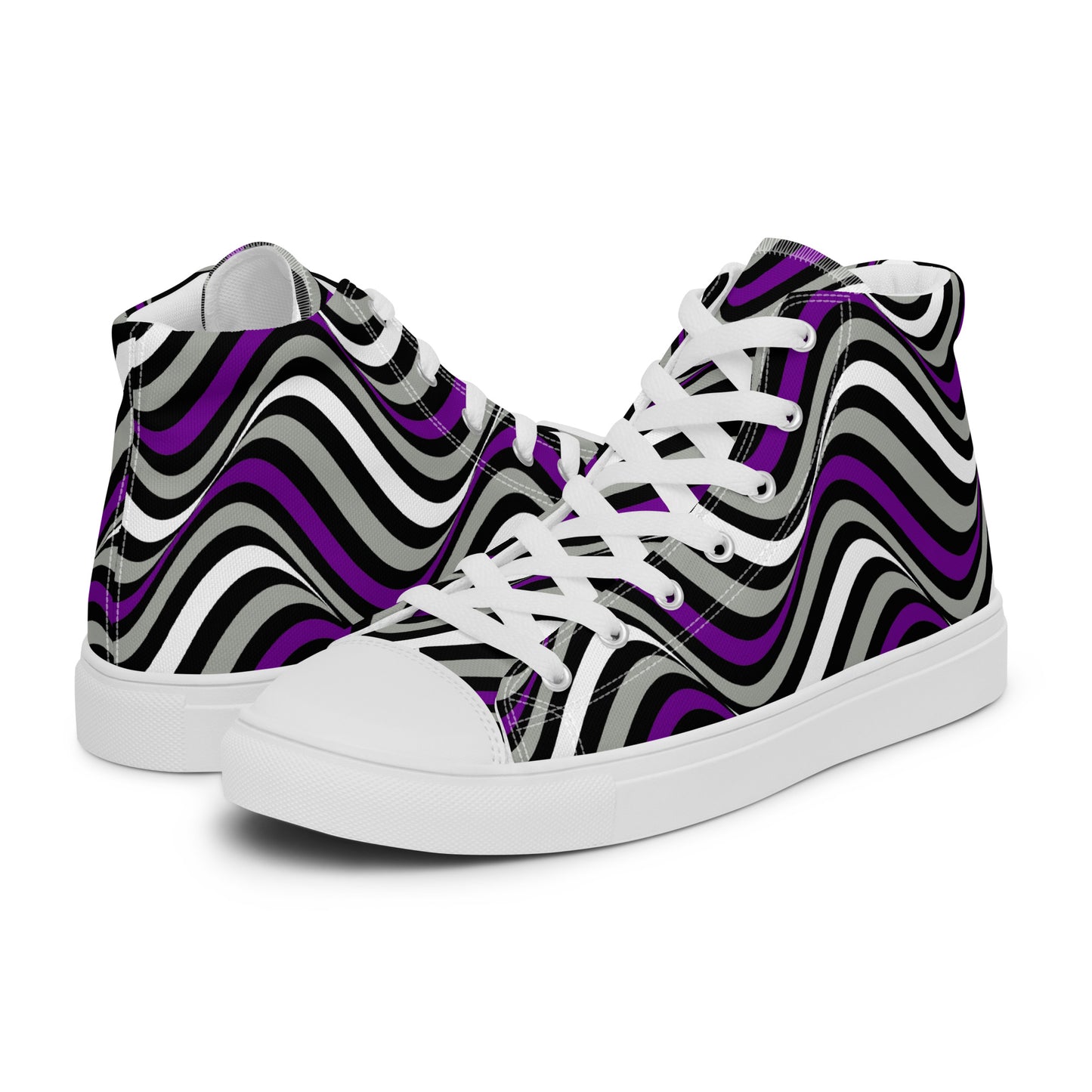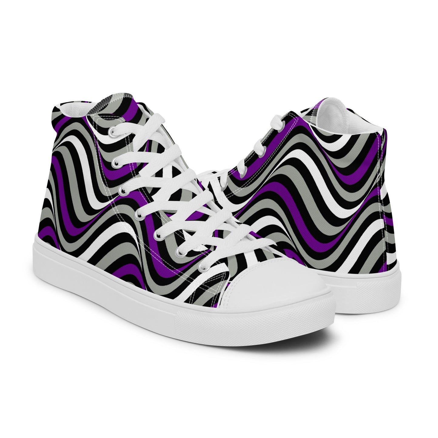 Step up your shoe game with the Greysexual Pride Wavey Men’s High Top Canvas Athletic Shoes. These handmade, trendy shoes are sure to spice up your outfit. Get yours now!
