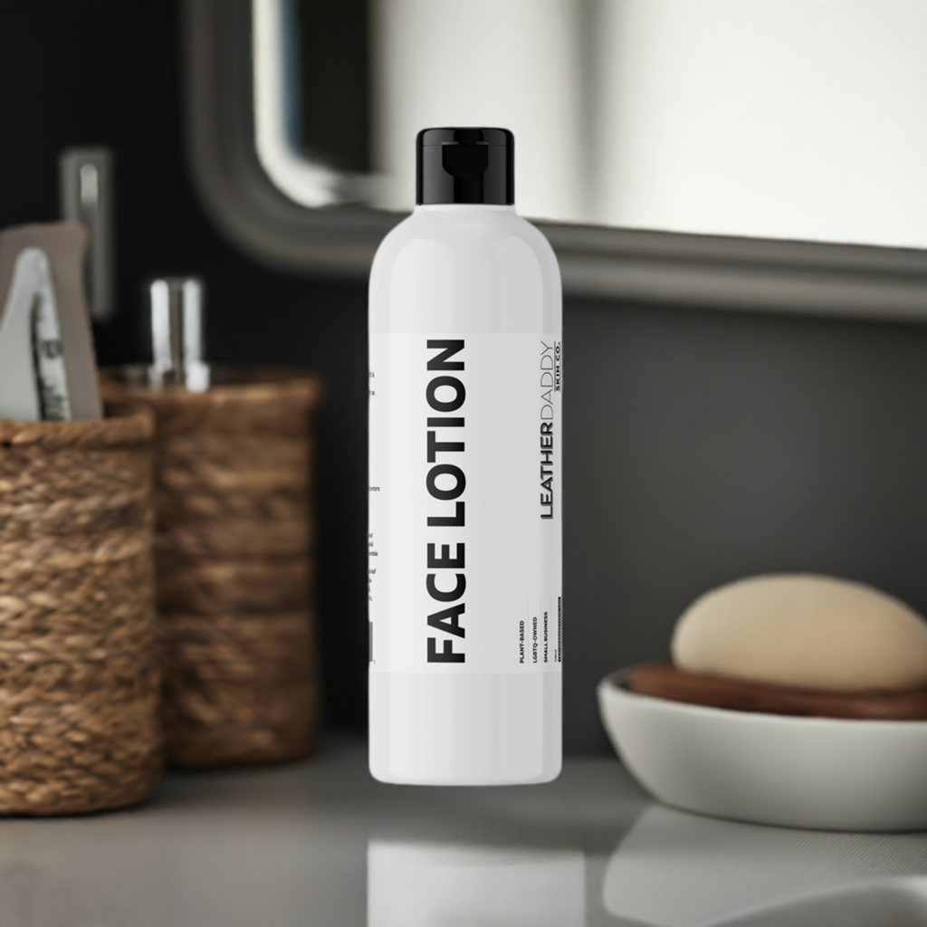 So go ahead and cover your face with our white, creamy LeatherDaddy Face Lotion. You deserve to feel sexy and confident, and your skin will thank you.