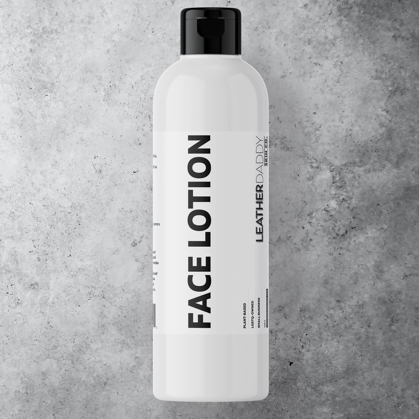 Harness the power of plants and soothing aloe with our LeatherDaddy Face Lotion, a lightweight and non-greasy formula developed to make you feel as sexy as you smell. Utilizing nourishing ingredients like aloe vera, shea butter, sunflower oil, jojoba oil, and passionfruit oil, this face lotion provides all-day hydration that won't leave you feeling oily.
