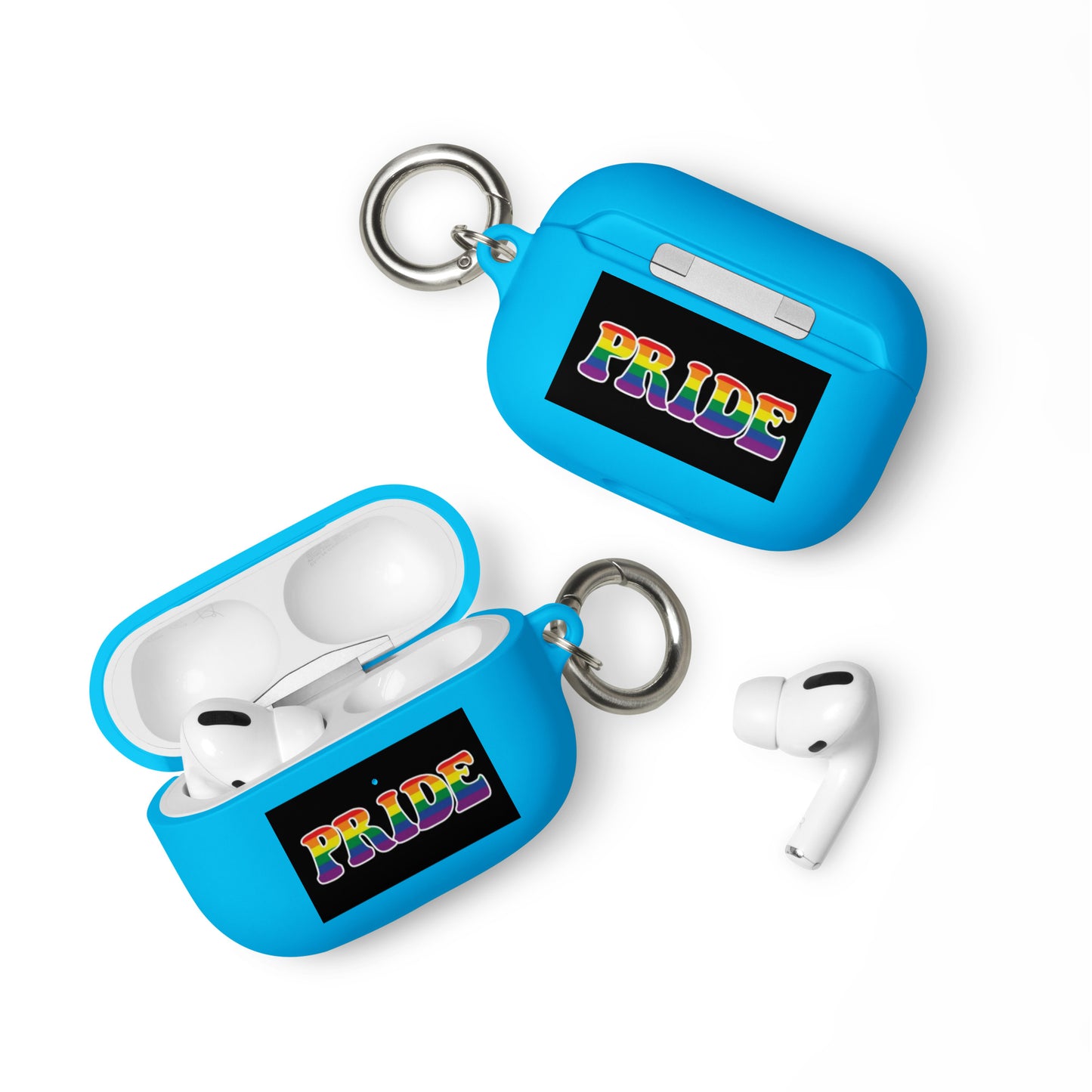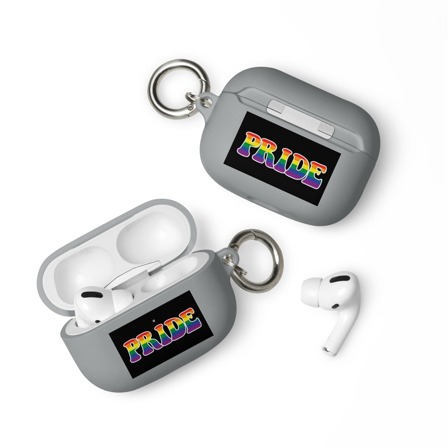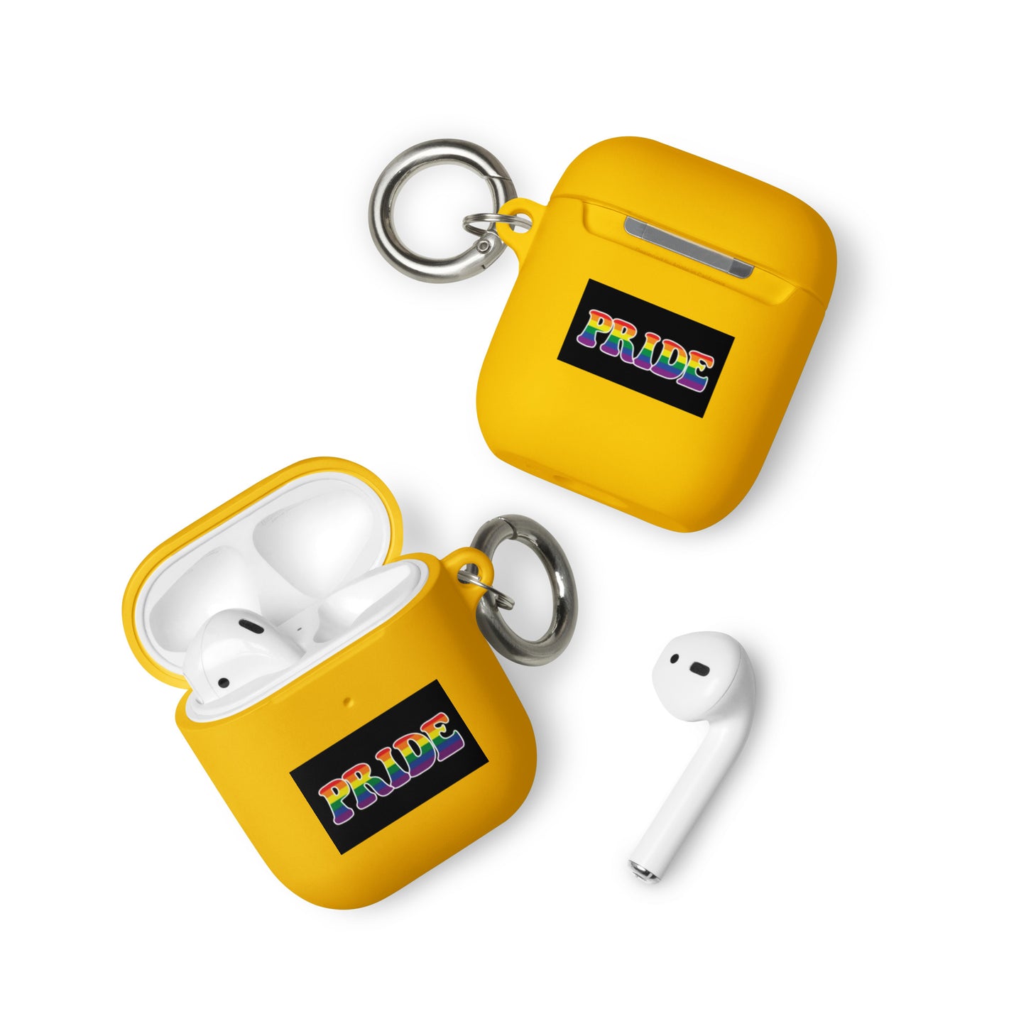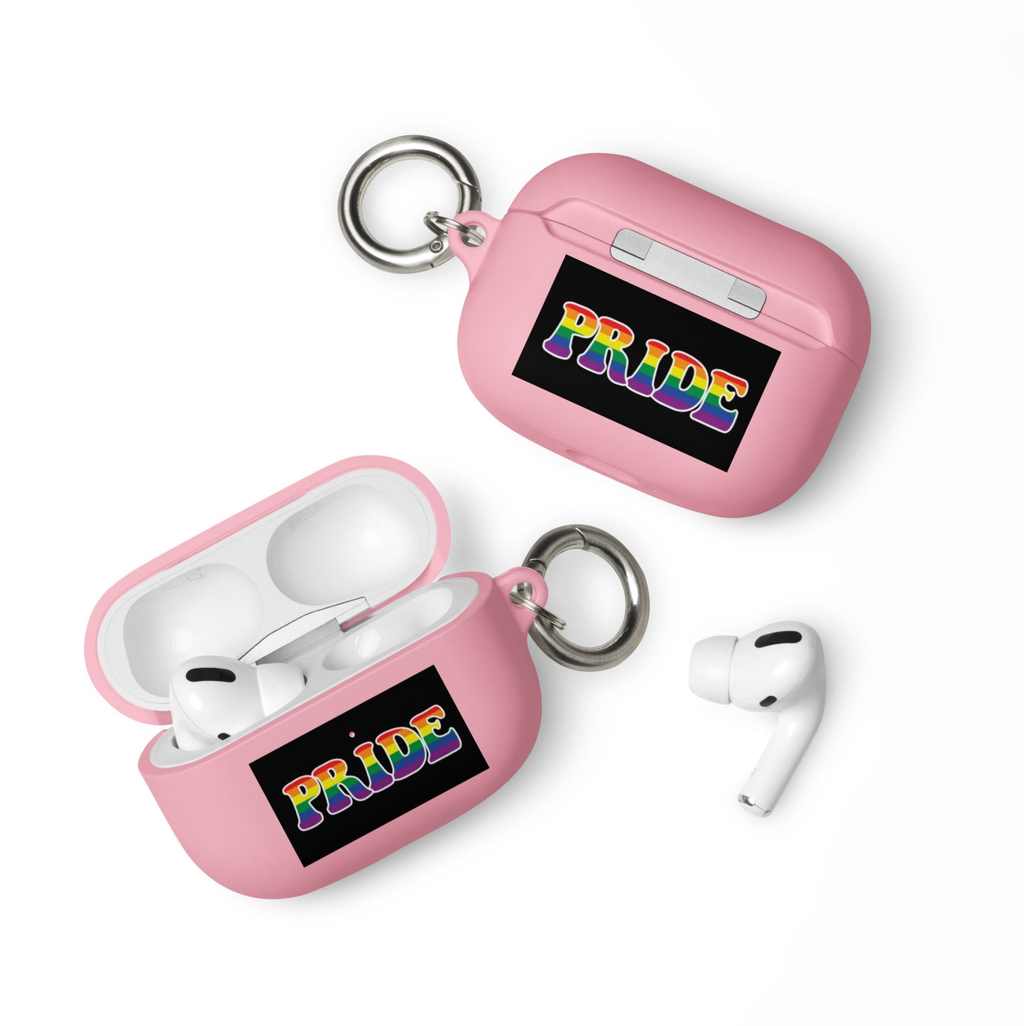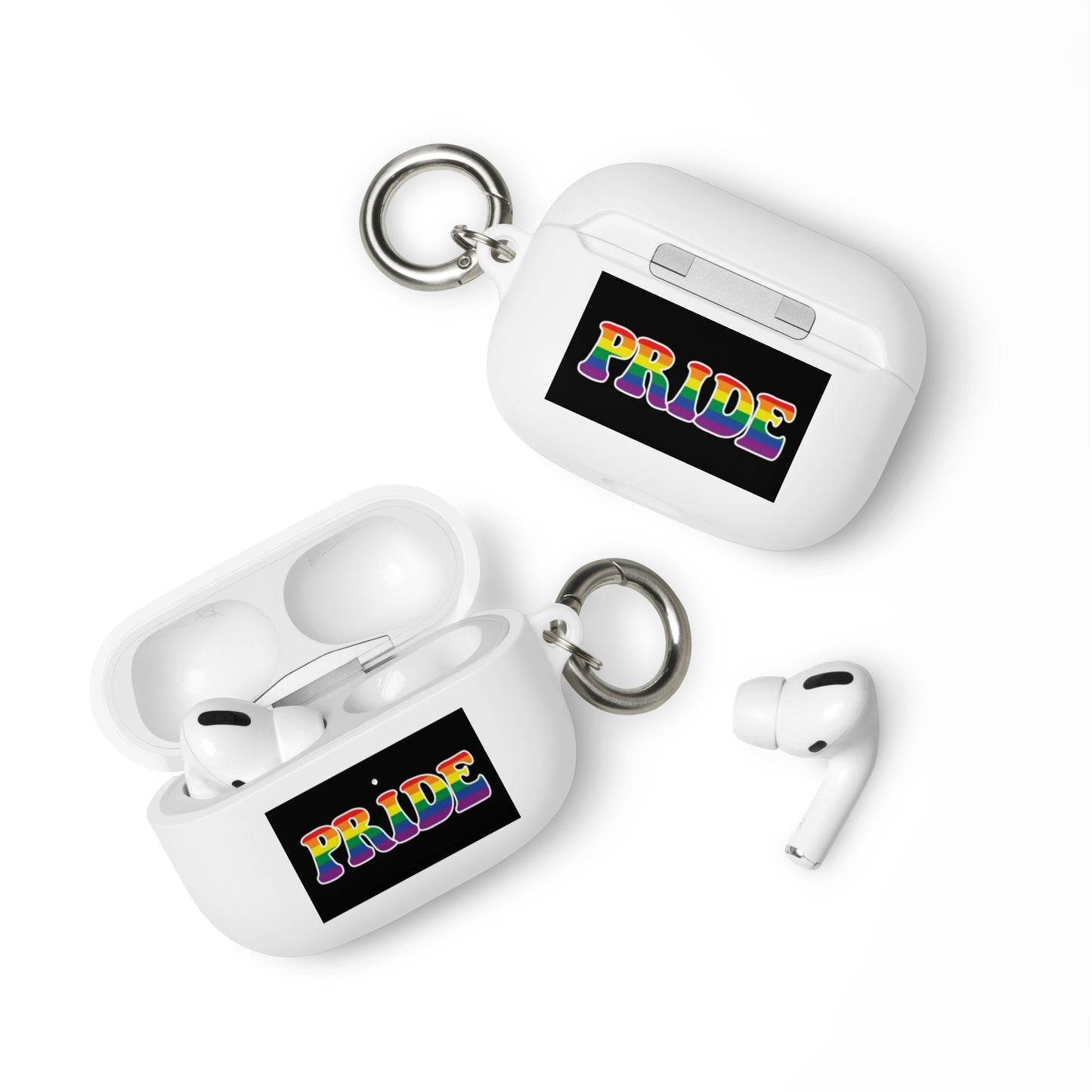 Get a two-in-one deal with these LGBTQ Pride Rubber Case for Apple AirPods® - Pride: an impact-absorbing protector for your earbuds and a stylish accessory you can attach to your clothes and bags with a metal carabiner. This case is made from a durable TPU material and works with both wireless and regular AirPod® chargers.