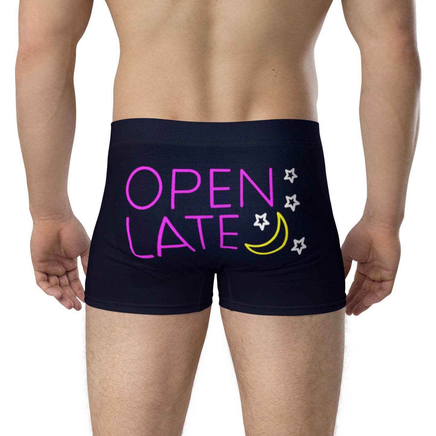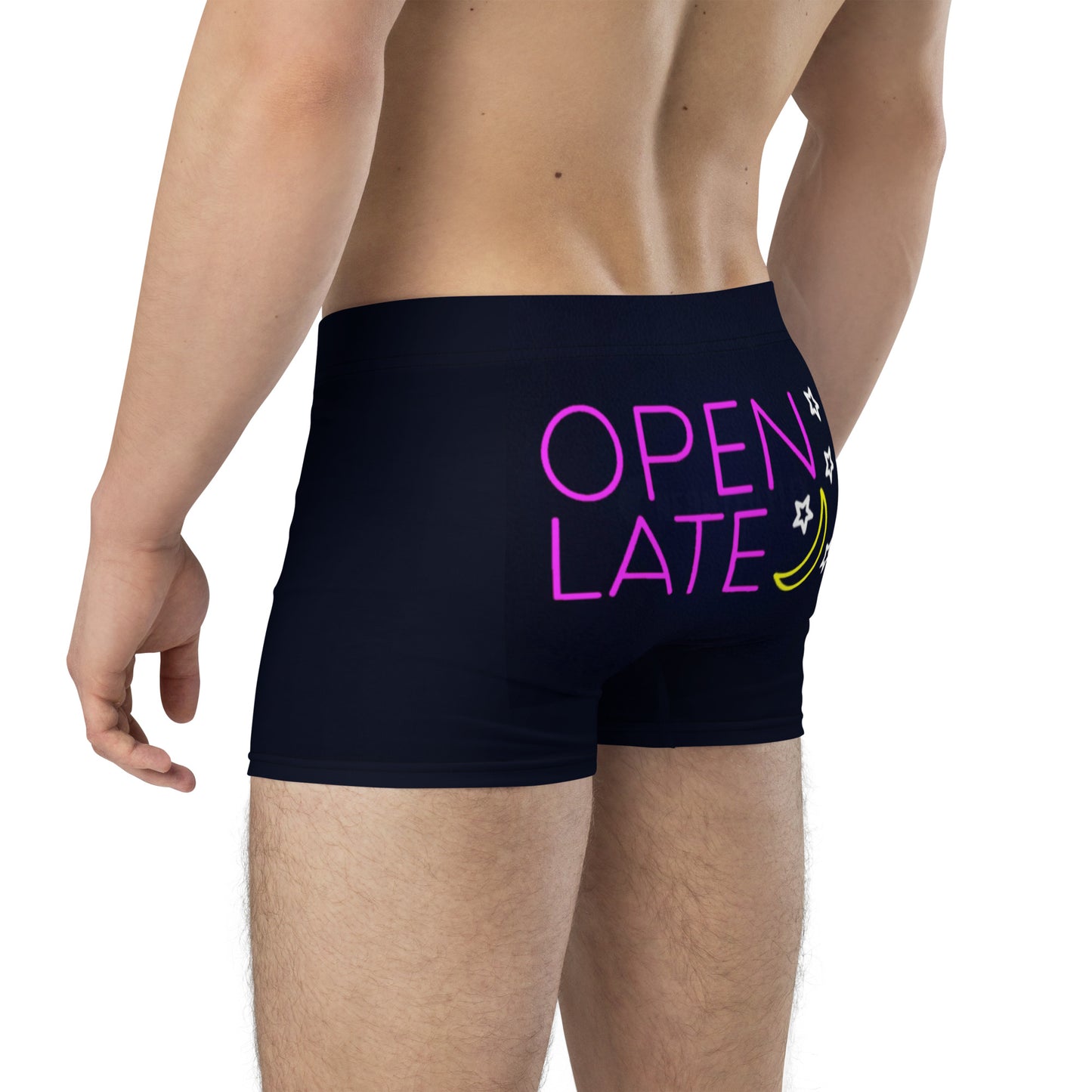 Get ready to spice things up with the Open Late Mens Boxer Briefs Underwear! Made from a magical blend of polyester and spandex, these undies will keep you comfy all day long. With a seamless back and a cozy front pouch, these are sure to be a hit with anyone in the mood for some late night fun.