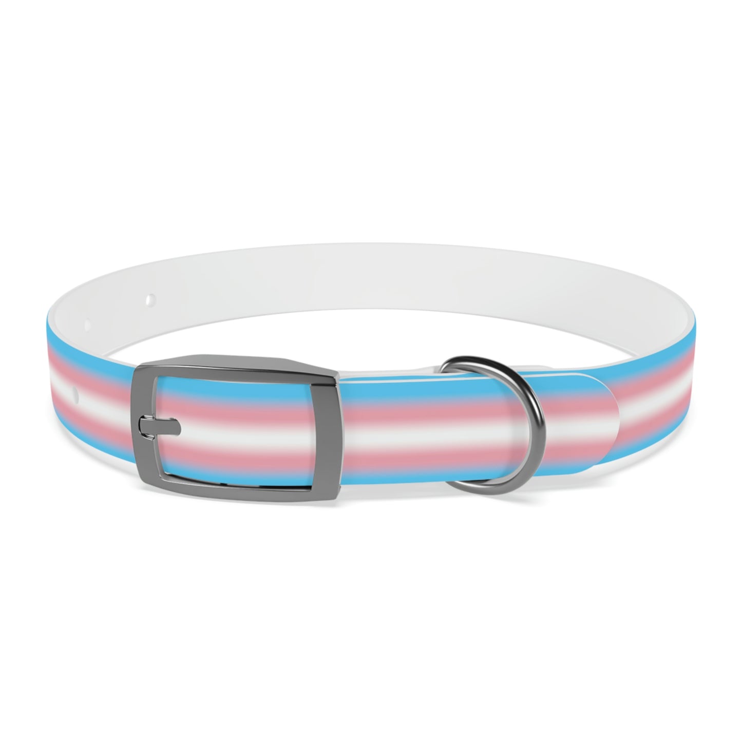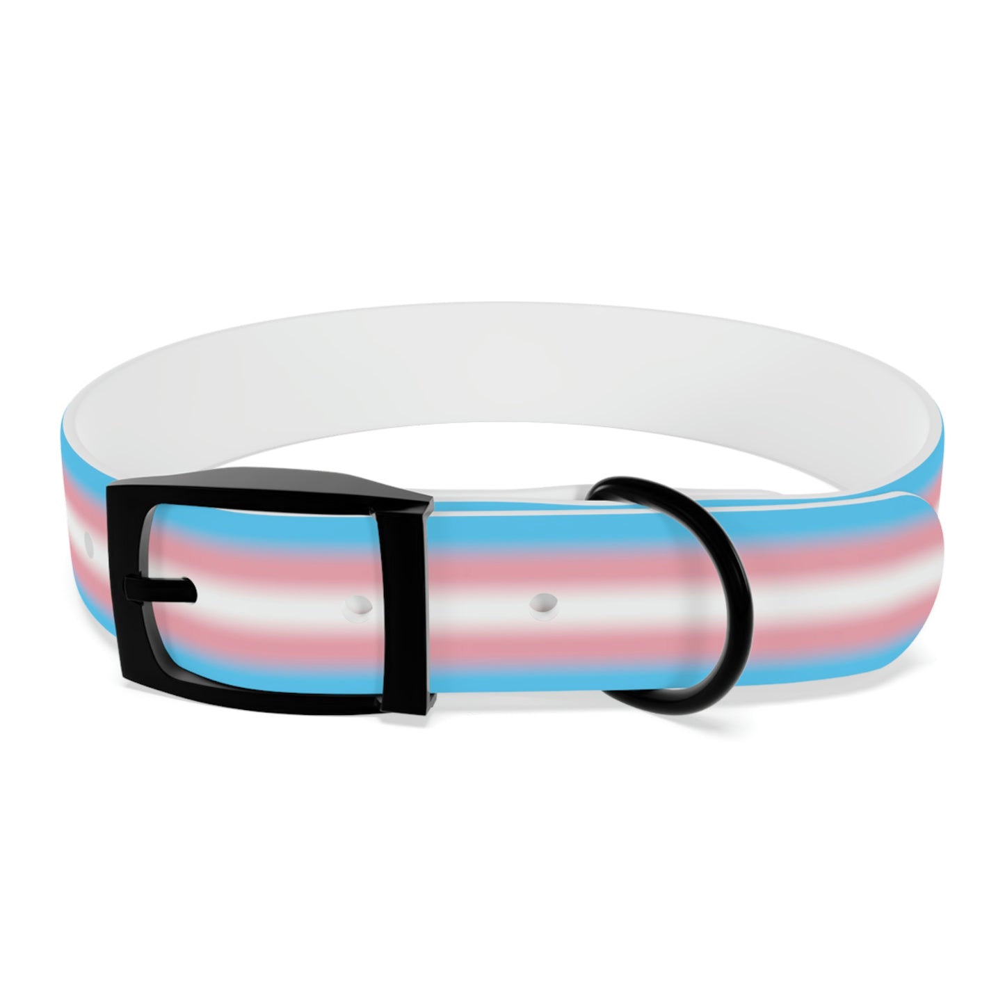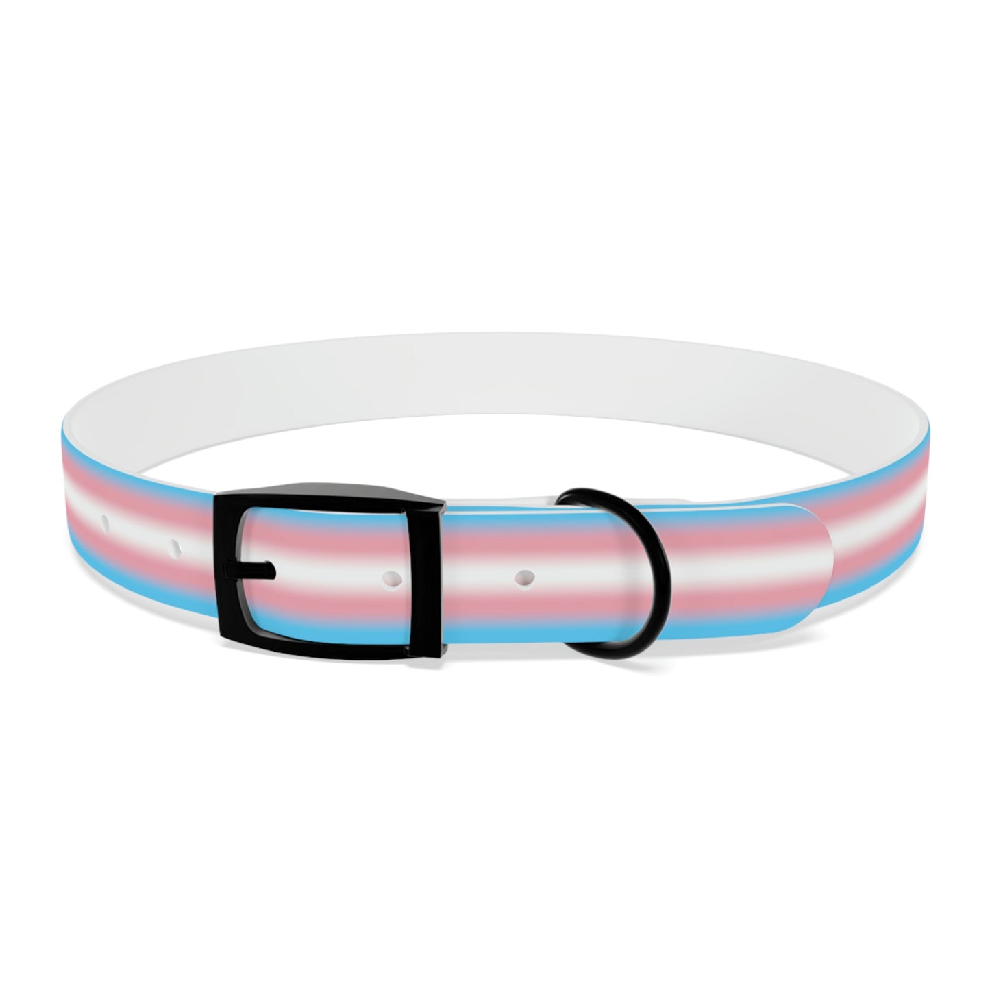 Add a touch of personality for all the playful pet pals out there with a Transgender Trans Pride Dog Collar. Made in the USA from advanced Thermo-Elastomer material, this personalized collar for pets is odor and stain-resistant as well as hypoallergenic.