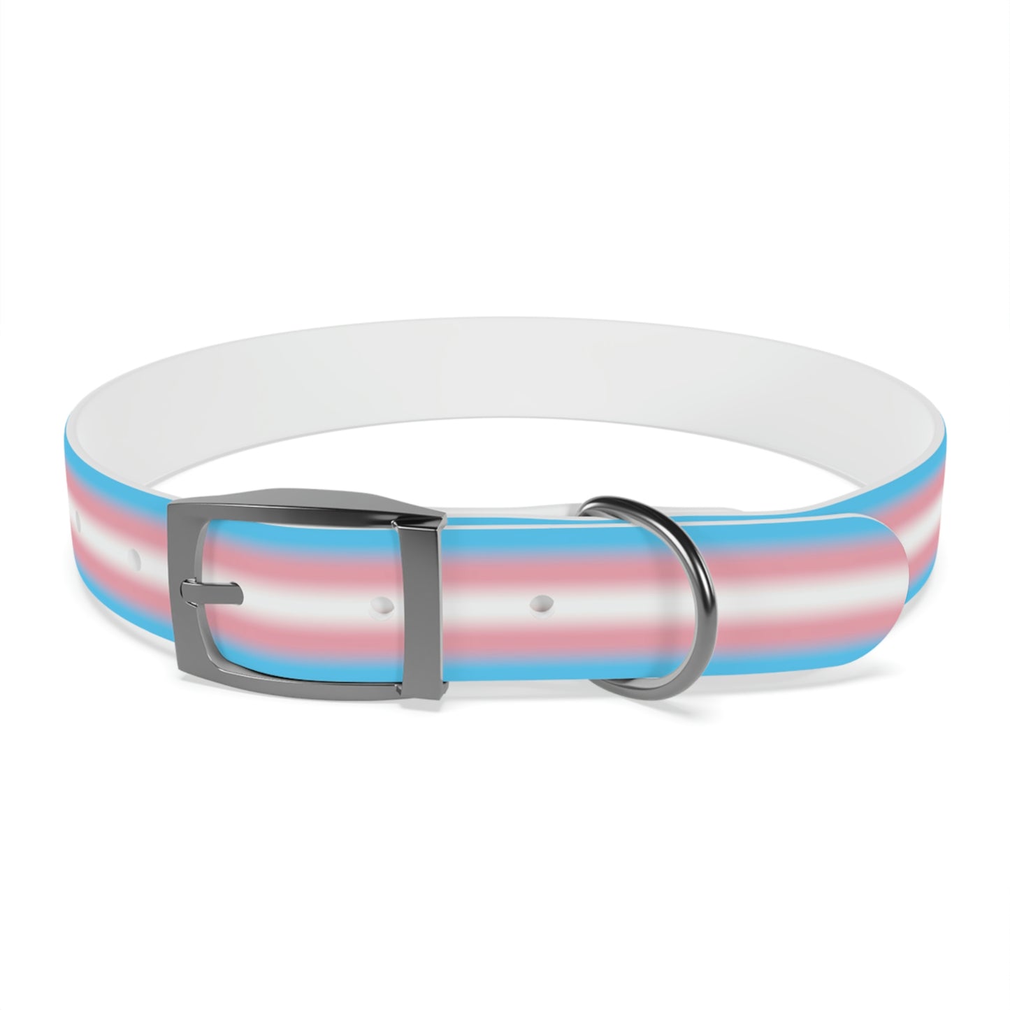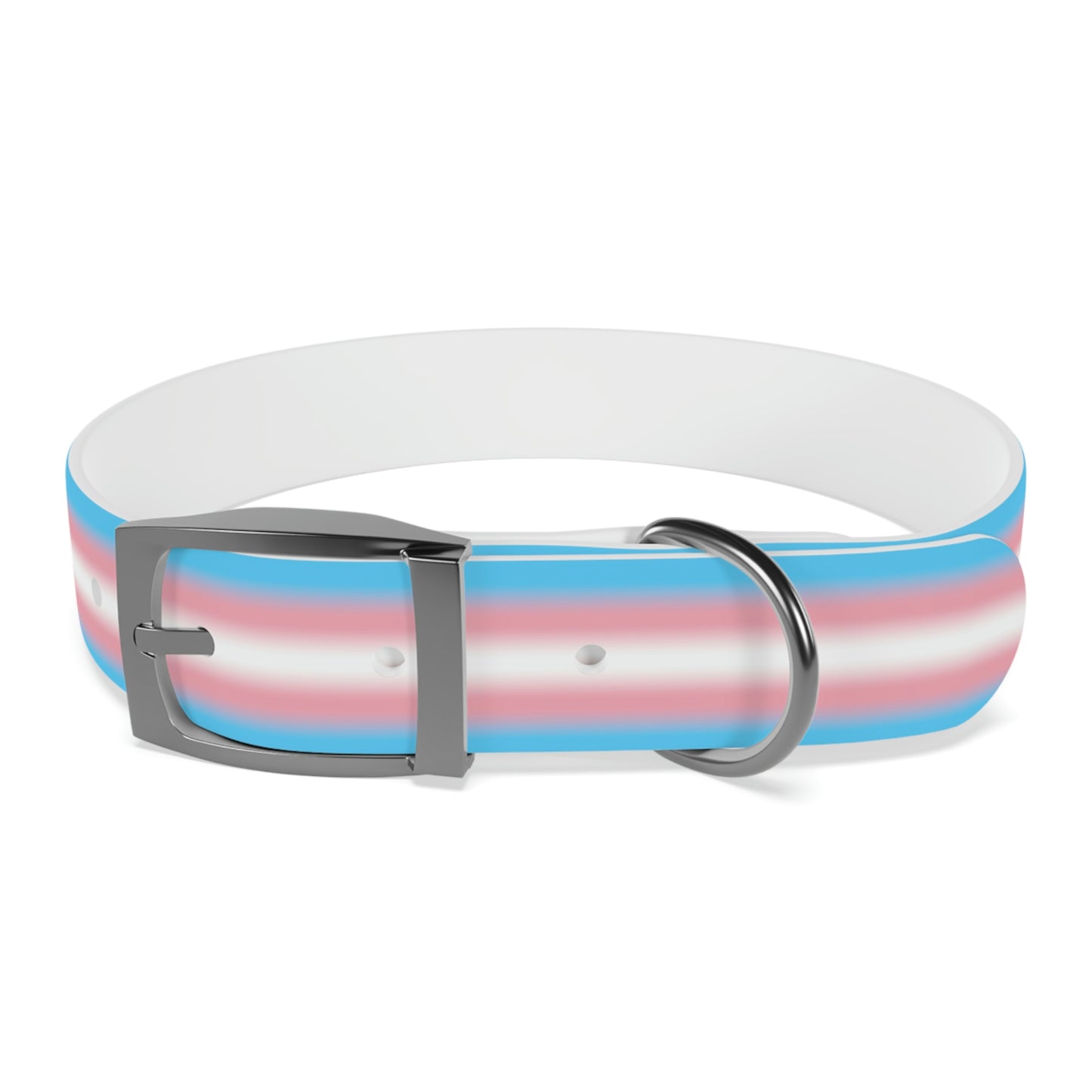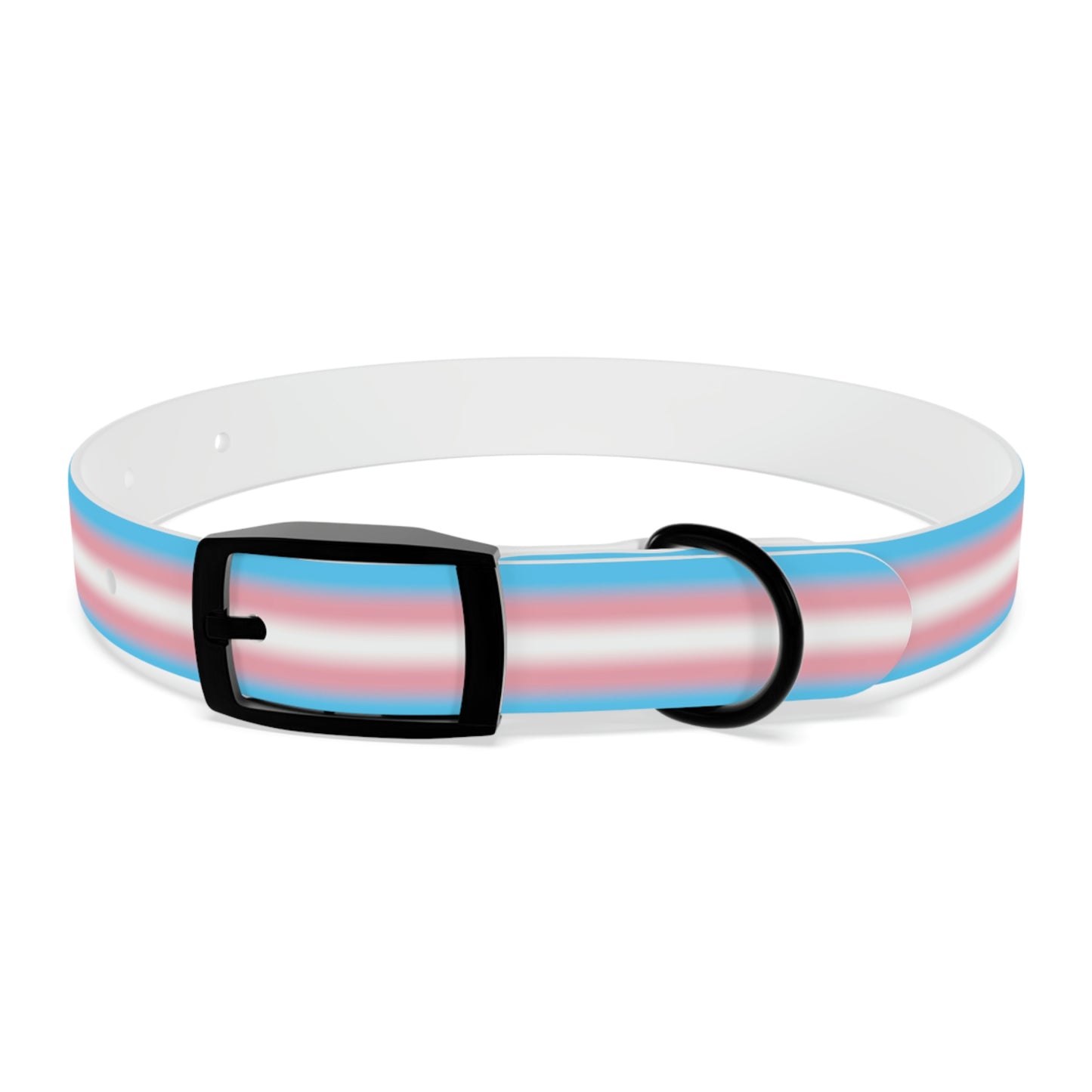 Add a touch of personality for all the playful pet pals out there with a Transgender Trans Pride Dog Collar. Made in the USA from advanced Thermo-Elastomer material, this personalized collar for pets is odor and stain-resistant as well as hypoallergenic.