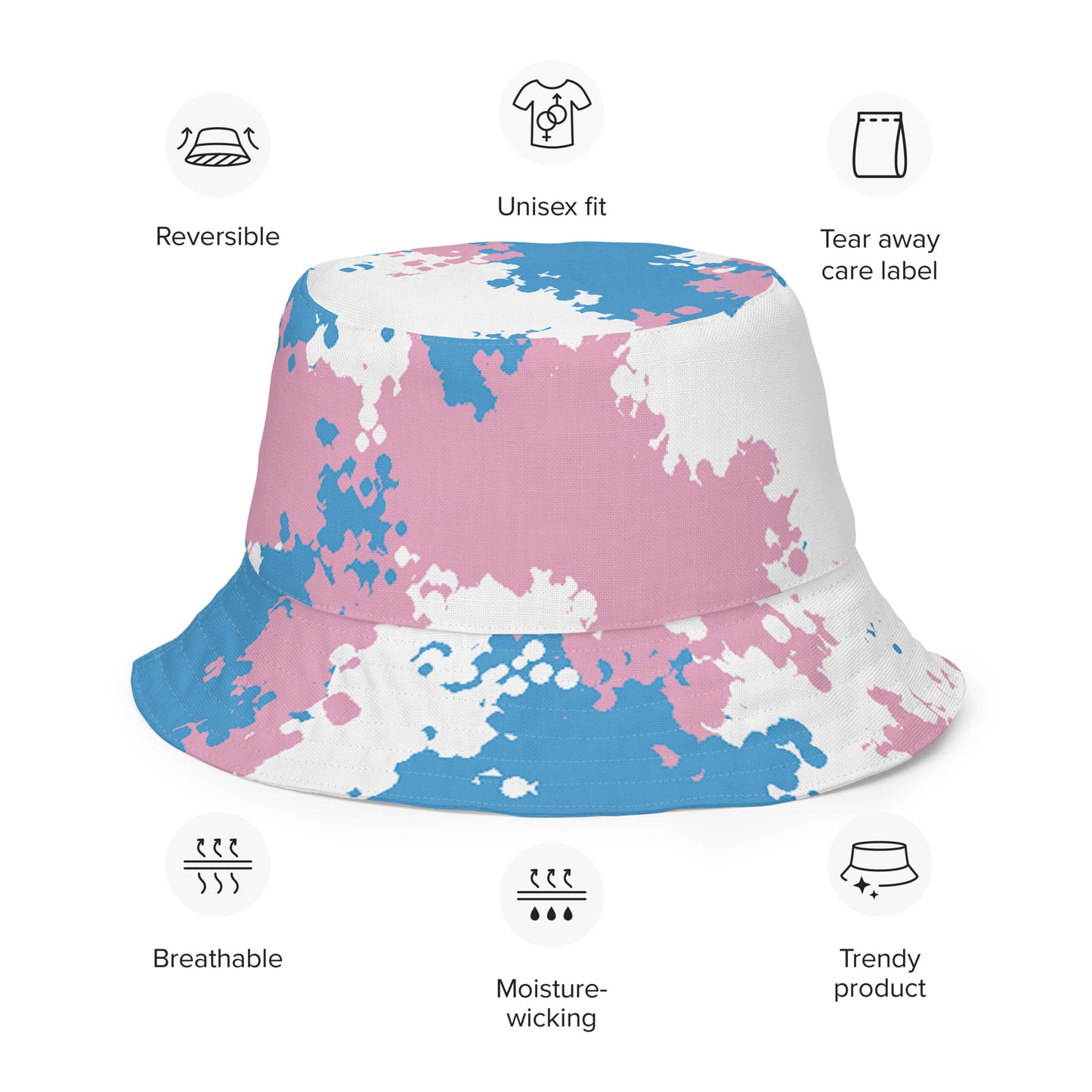 This Transgender Trans Pride Reversible Bucket Hat - Camouflage can be worn on both sides, making it easy to match with different outfits. Made of breathable premium fabric, this hat will become your go-to streetwear accessory.